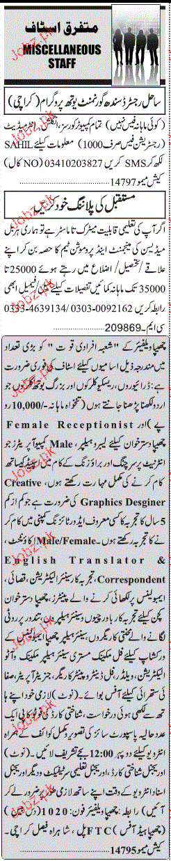 Sunday Jang Classified Clerks, Labors Job Opportunity