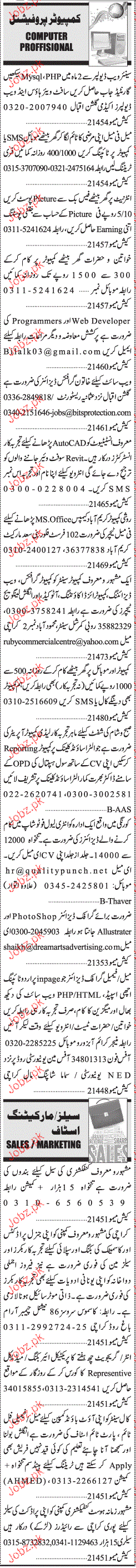 Sunday Jang Classified Computer Professional are required in Karachi.