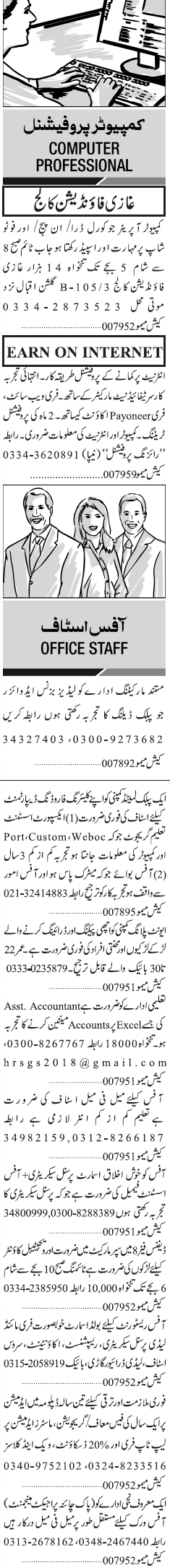 Apply as per details in job advertisement. Login to view further details of how to apply via https://www.jobz.pk online.