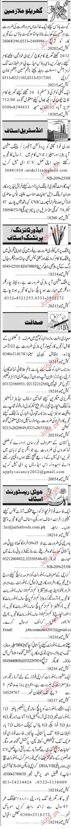 Sunday Jang Classified Cook, Marketing Incharge Wanted