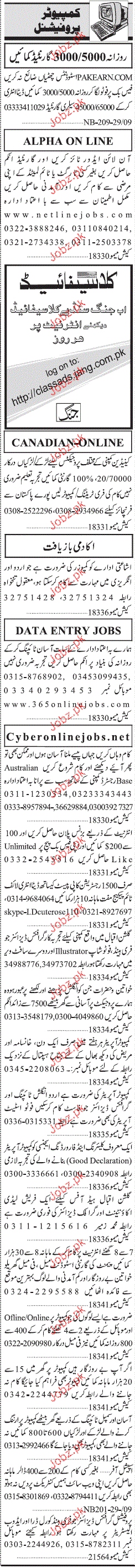 Sunday Jang Classified Data Entry Operators Job Opportunity