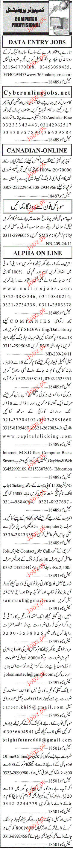 Sunday Jang Classified Data Entry Operators are required in Karachi