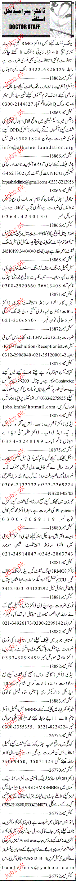 Sunday Jang Classified Doctor, Lady Technicians Wanted