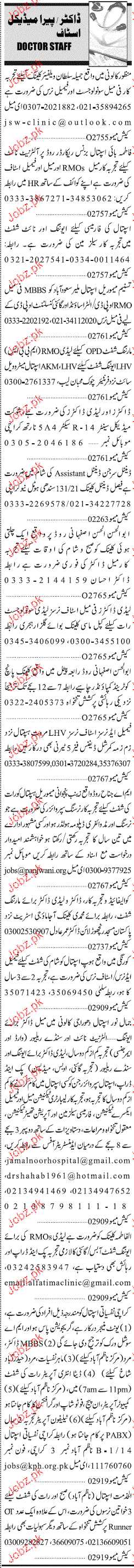 Sunday Jang Classified Doctor, Nurses, Technicians Wanted