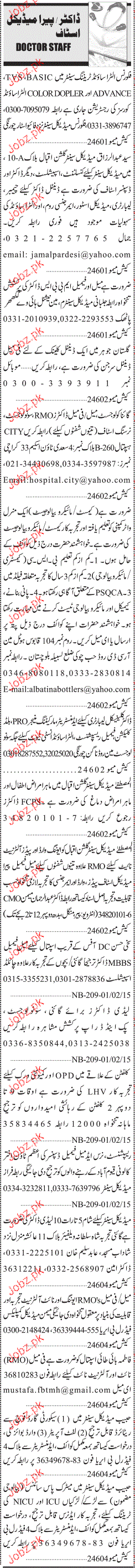 Sunday Jang Classified Doctors and Para Medical Staff are required in Karachi.