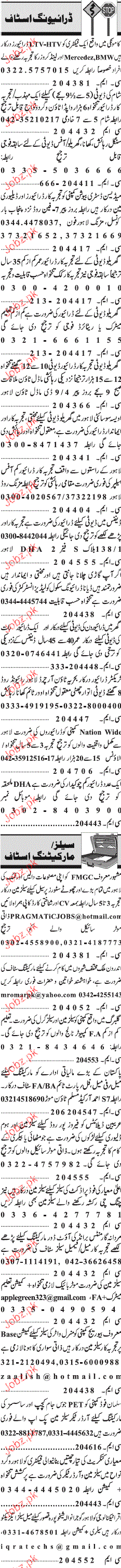 Sunday Jang Classified Driving Staff Job Opportunity