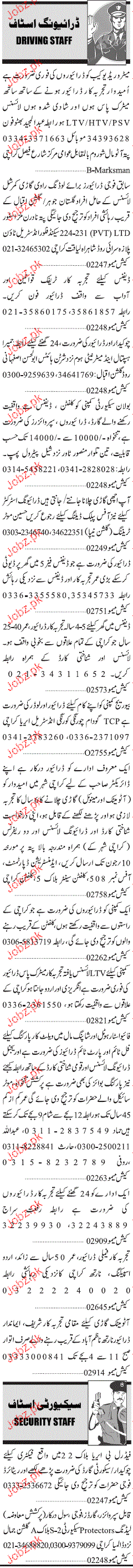 Sunday Jang Classified Driving  Staff Job Opportunity