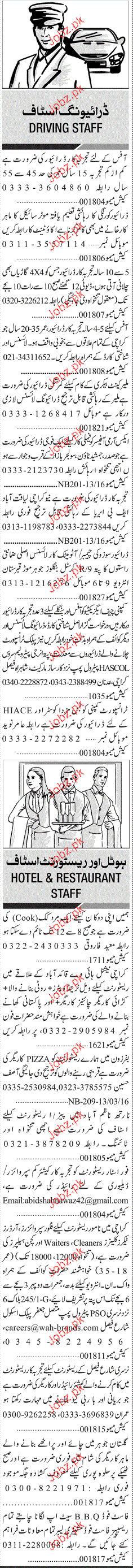 Sunday Jang Classified Driving Staff Job Opportunity