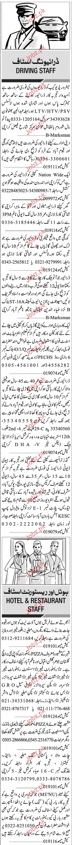 Sunday Jang Classified Driving Staff are required in Karachi.