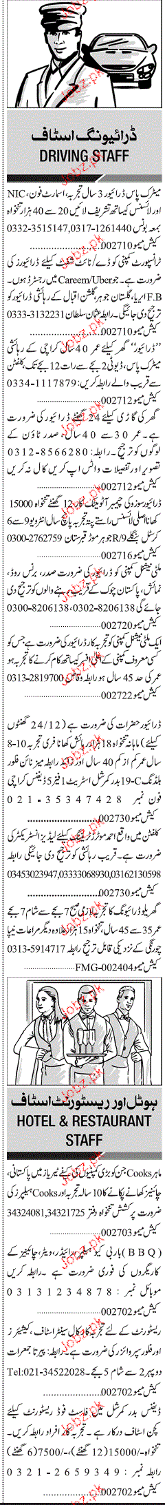 Sunday Jang Classified Driving Staff Job Opportunity