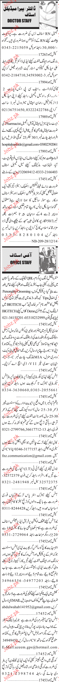 Sunday Jang Classified Gynecologist, Staff Nurses Wanted