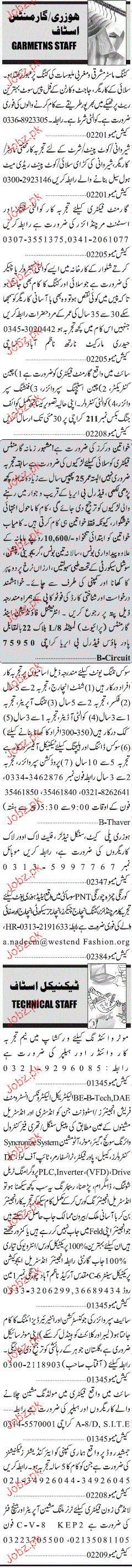 Sunday Jang Classified Hosiery And Garment Staff Wanted