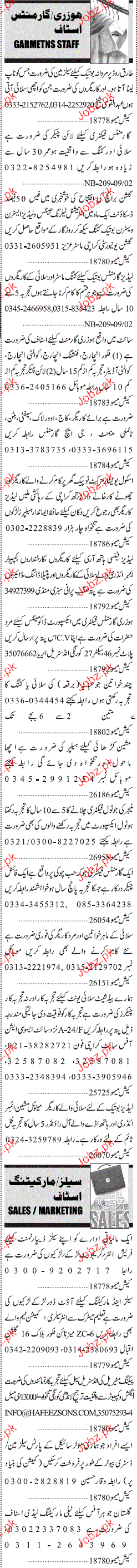Sunday Jang Classified Hosiery & Garment Staf Wanted