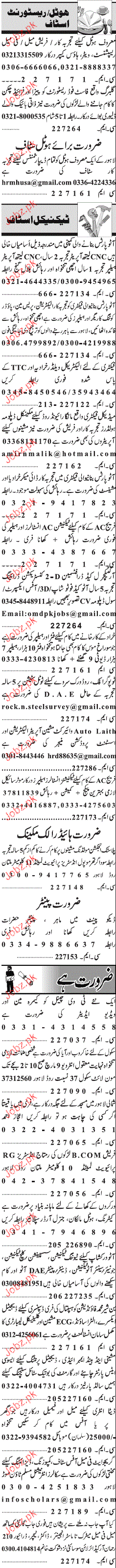 Sunday Jang Classified Hotel and Restaurant Staff Wanted