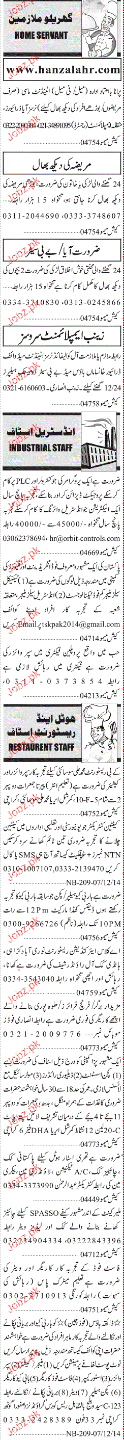 Sunday Jang Classified House Staff Job Opportunity