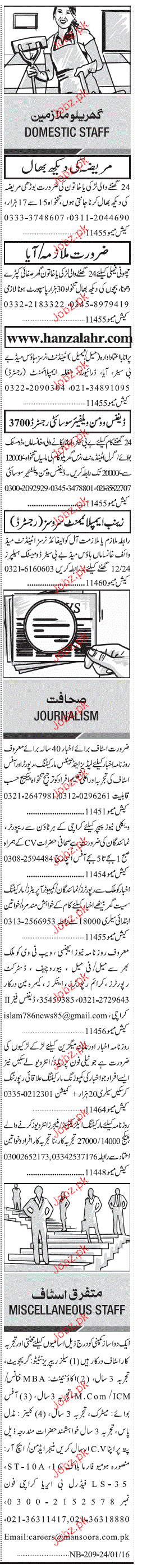 Sunday Jang Classified House Staff Job Opportunity