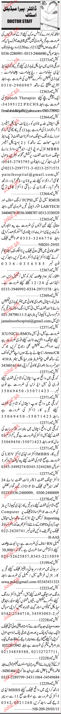 Sunday Jang Classified Lab Technicians, Radiologist Wanted