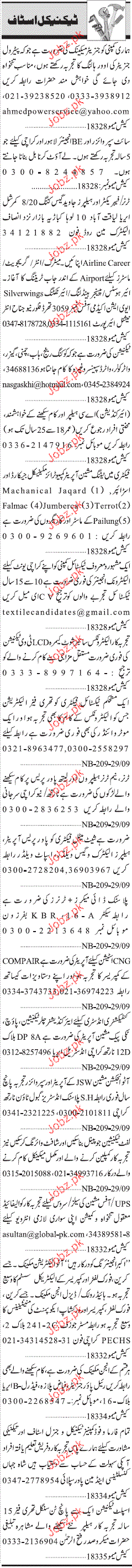 Sunday Jang Classified Mechanics, Machine Operators Wanted