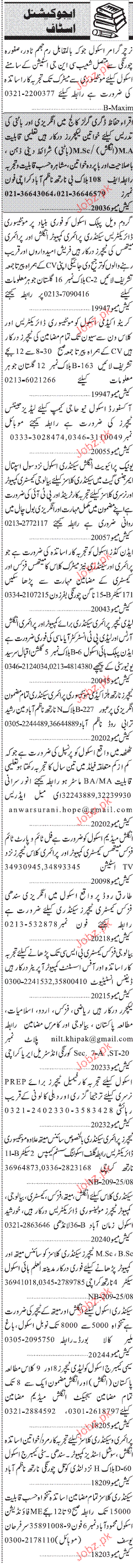 Sunday Jang Classified Principal, Teachers Job Opportunity
