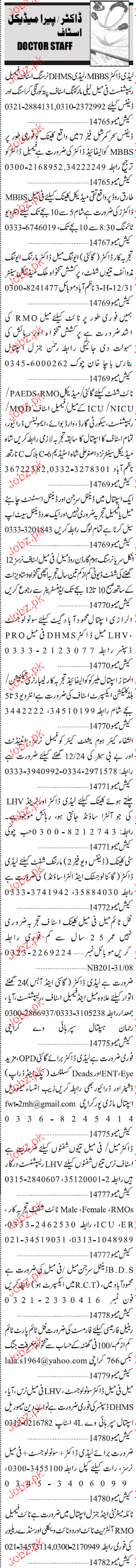 Sunday Jang Classified Receptionist, Doctors Wanted