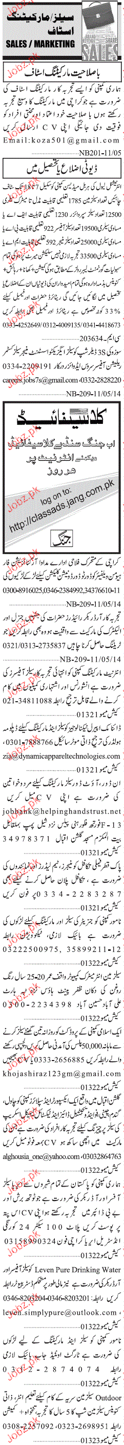 Sunday Jang Classified Sales and Marketing Staff required in Karachi