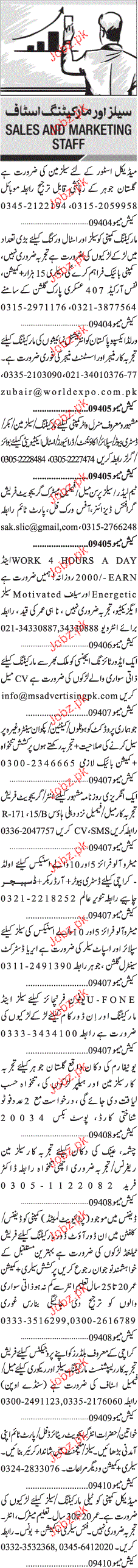 Sunday Jang Classified Sales And Marketing Staff Wanted
