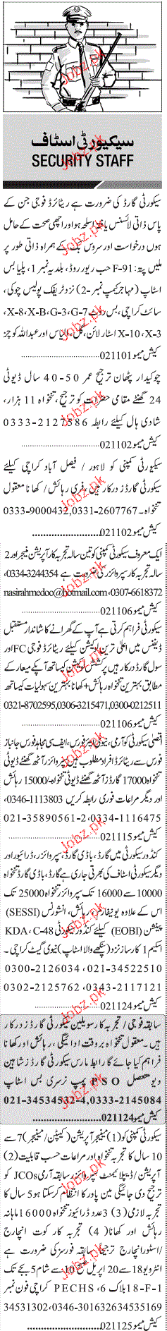 Sunday Jang Classified Security Staff are required in Karachi.