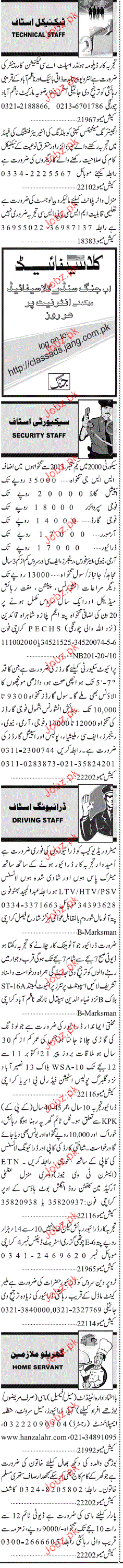 Sunday Jang Classified Special Guards, Supervisor Wanted
