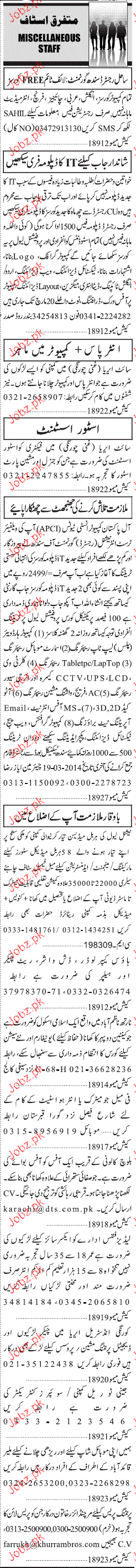 Sunday Jang Classified Teachers, Store Assistants Wanted