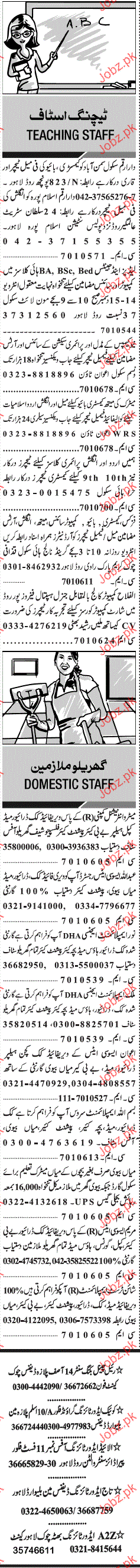 Sunday Jang Classified Teaching Staff are required in karachi.