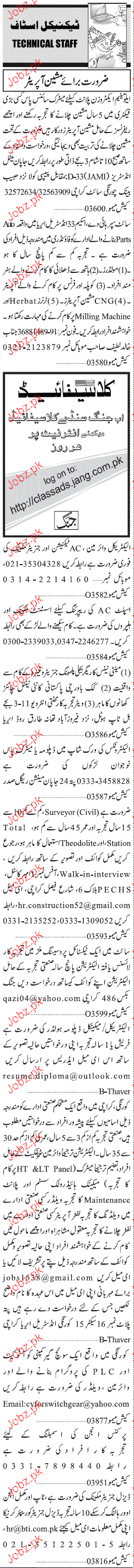 Sunday Jang Classified Technical  Staff Job Opportunity