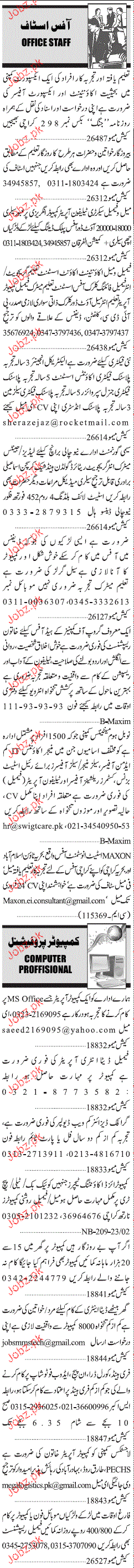 Sunday Jang Classified Telephone Operators Job Opportunity