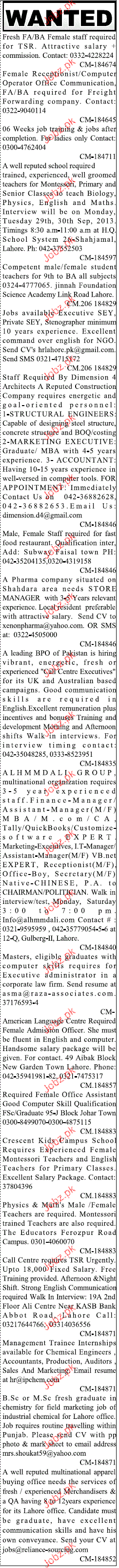 Sunday Jang Classified Telesales Representatives Wanted