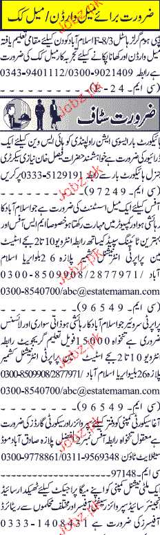 Sunday Jang Classified Warden, Drivers Job Opportunity