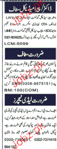 Sunday Nawe I Waqat Classified Doctors And Teachers Wanted