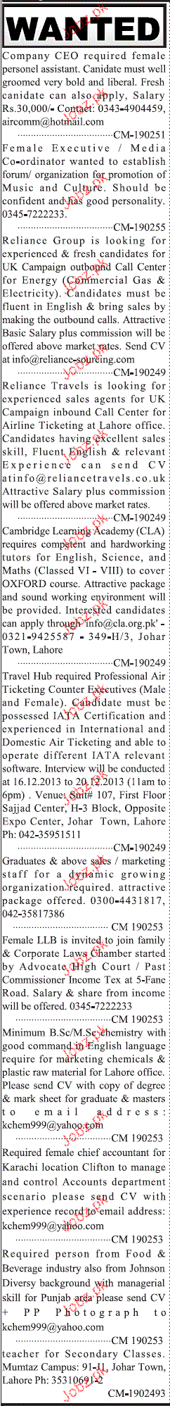 Latest Private Company Admin Clerical Posts Lahore 2025