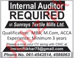 Sunrays Textile Mills Multan Jobs 2020 for Internal Auditor