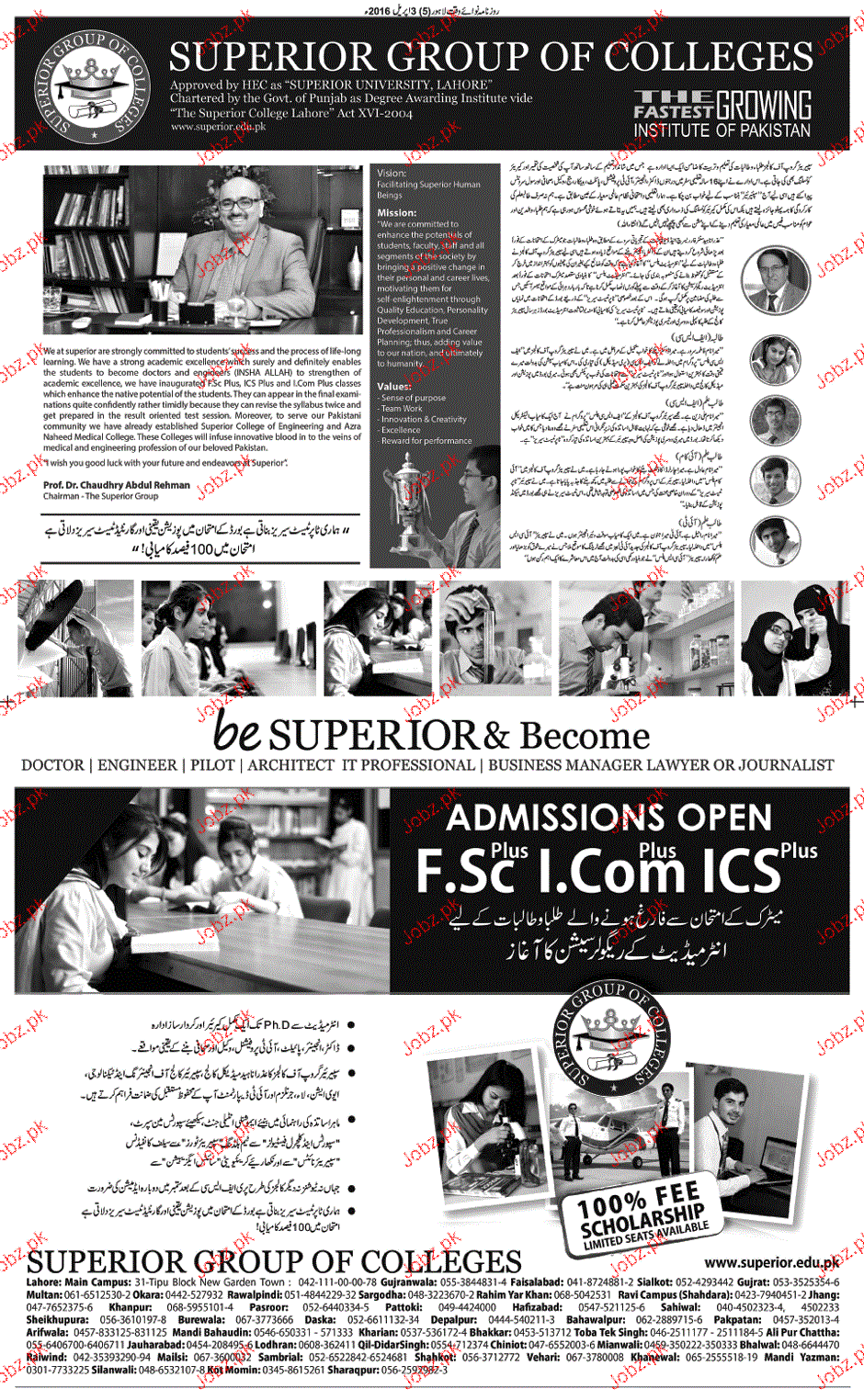 Superior Group of Colleges Admission in Fsc, I.Com and ICs in Lahore. Read newspaper ad for exact details.