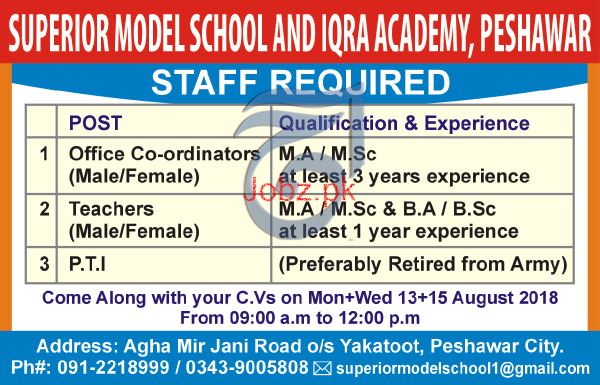 Latest Superior Model School & College Iqra Academy Teaching Posts Peshawar 2025
