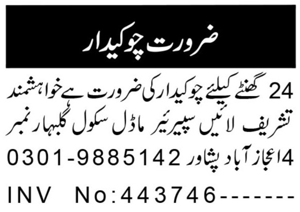 Superior Model School Peshawar Jobs 2025 For Chowkidar