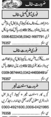Apply as per details in job advertisement. Login to view further details of how to apply via https://www.jobz.pk online.