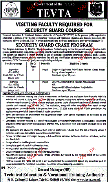 Supervisor and Instructors Job in TEVTA