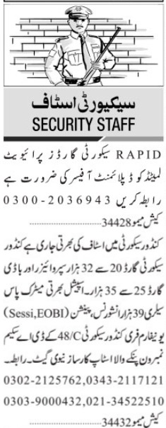 Vacant posts including supervisor and security guard are announced in Private Company Karachi, karachi Sindh Pakistan as per 14 April 2024 advertisement in daily Jang Newspaper. Candidates with Matric, Middle and Intermediate etc. educational background will be preferred.
