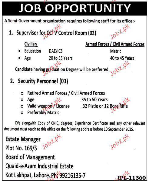 Apply as per details in job advertisement. Login to view further details of how to apply via https://www.jobz.pk online.
