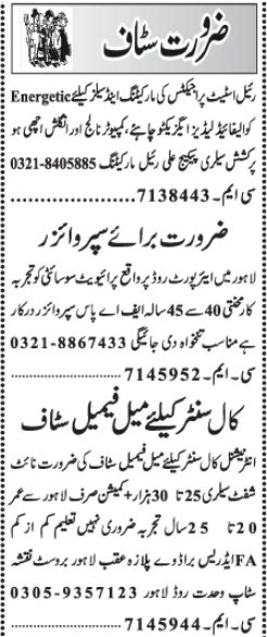 Private Company invites applications for job positions advertised in daily Jang dated 14 May 2024 for following vacancies in Lahore, lahore Punjab Pakistan.