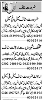 Apply at Private Company latest Classifieds jobs in Human Resource and departments before closing date which is around May 17, 2024 or as per closing date in newspaper ad. Read complete ad online to know how to apply on latest Private Company job opportunities. Telephone Handling and Accounting skills may beneficial for these Private Company jobs. Employer provides accommodation and food facility.