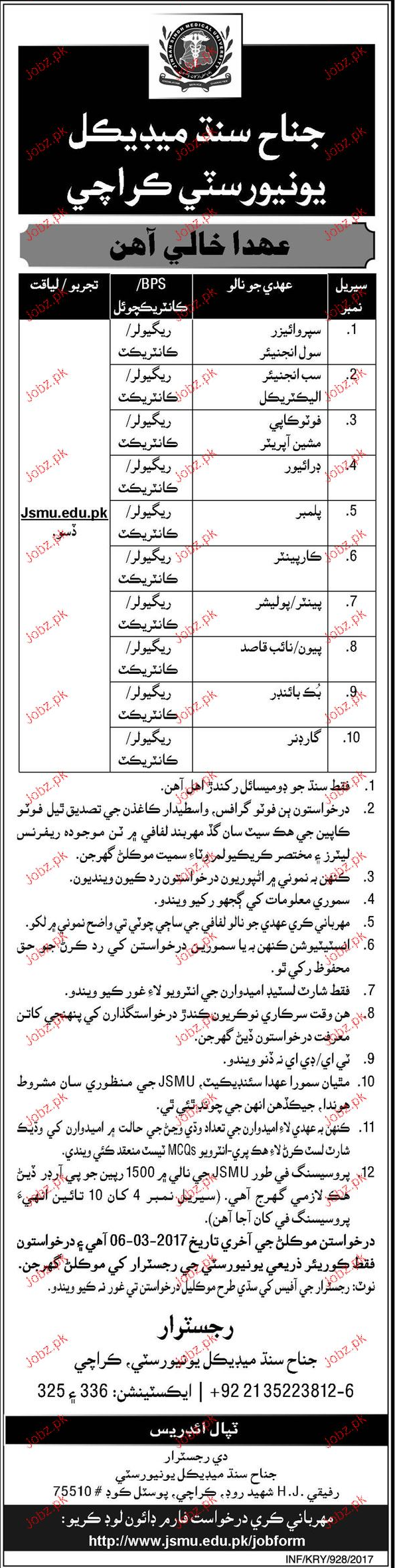 Apply as per details in job advertisement. Login to view further details of how to apply via https://www.jobz.pk online.
