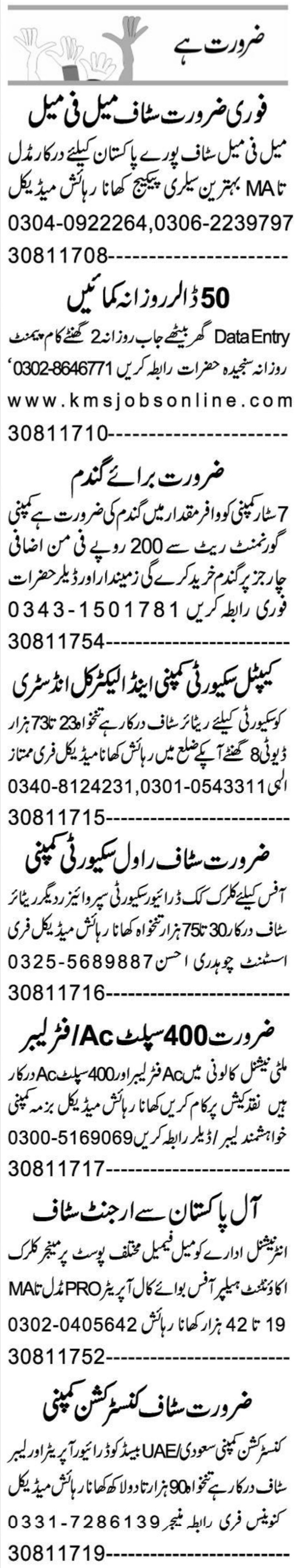 Private Sector jobs advertisement dated about 1 April 2022 in daily Express Newspaper invites application for the vacant post of accountant, driver, ac fitter labor, labor staff, helper, manager, cook, call operator, male female staff, office boy, retired staff, security guard, clerk, operator, security supervisor, data entry operator and other staff in Peshawar, peshawar Khyber Pakhtunkhwa KPK Pakistan. Educational qualifications required Bachelor, Middle, Matric, Intermediate and Master etc.