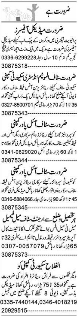 Latest Classifieds jobs in Private Company in Admin Clerical and others can be applied till 28 April 2024 or as per closing date in newspaper ad. Read complete ad online to know how to apply on latest Private Company job opportunities. Skills in Telephone Handling, Security, Account Management and Accounting may be preferred for these Private Company jobs. On job food, medical and accommodation facility is provided.