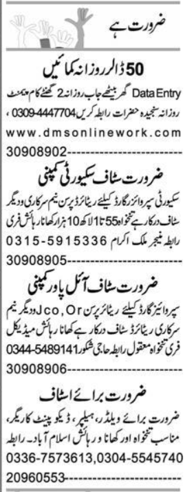 Apply at Private Company latest Classifieds jobs in Admin Clerical and departments before closing date which is around February 22, 2025 or as per closing date in newspaper ad. Read complete ad online to know how to apply on latest Private Company job opportunities. On job food and accommodation facility is provided.